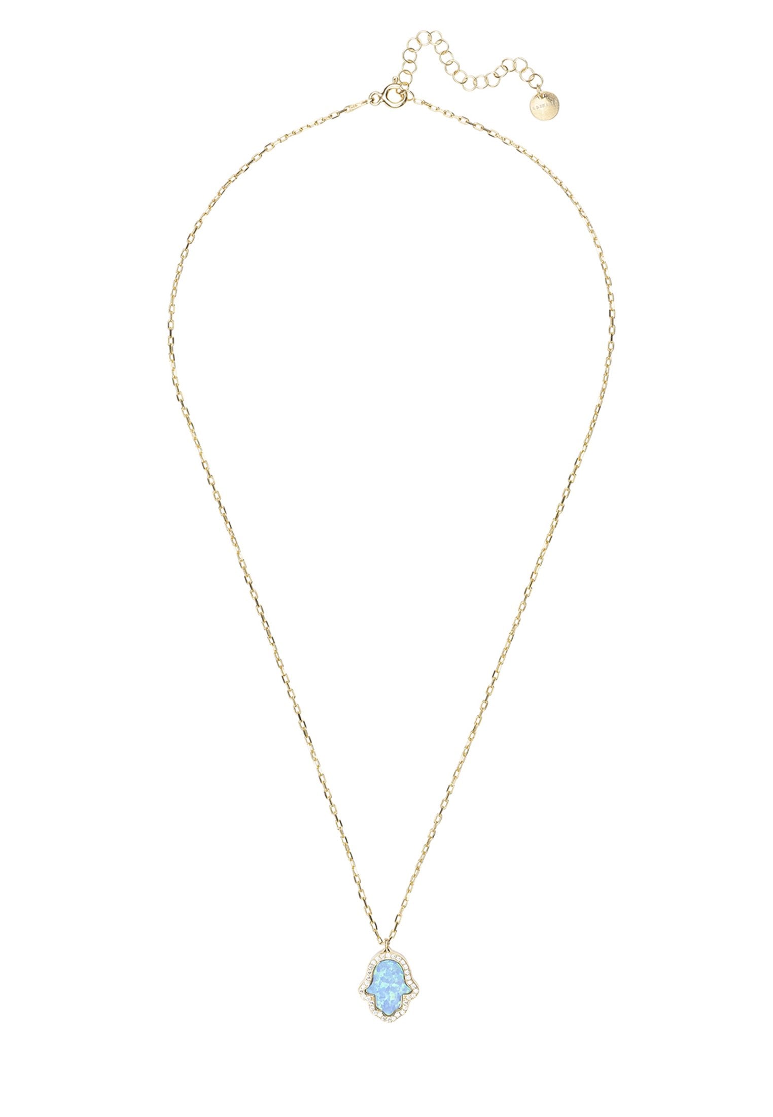 Hamsa Opalite Turquoise Blue Necklace Gold