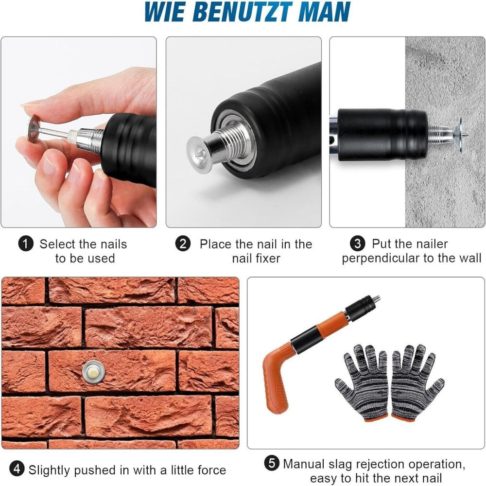 [Wide Application] This wall nail fastening tool is suitable for water and electricity installation, wire box installation, wire trough and wire pipe fixing, door and window fixing, water elevator installation, solar lights, etc. It is also suitable for various soft and hard substrates, thin and thick steel plates.